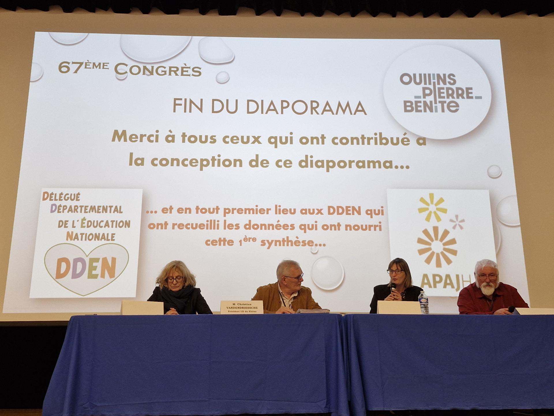 Après les travaux statutaires de la matinée, les moments où nous avons honoré nos militants les plus impliqués et ceux consacrés à la convivialité, l'après-midi a vu les DDEN rendre compte des résultats de l'enquête nationale sur l'école inclusive.